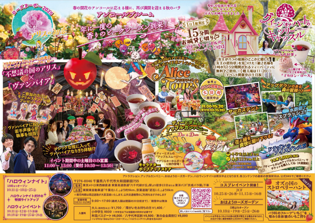 別途料金がかかるものや、期間限定のイベントがございます。詳細については、やちよ京成バラ園のホームページをご確認ください。